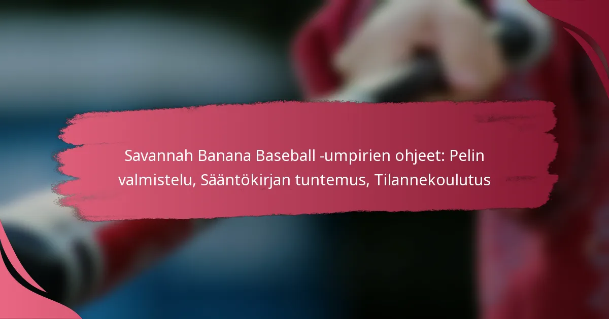 Savannah Banana -otteluihin valmistautuvien tuomareiden on keskityttävä ennakkoseremonioihin, varusteiden valmiuteen ja tehokkaaseen viestintään, jotta he voivat navigoida jokaisen ottelun ainutlaatuisissa haasteissa. Tuntemus erikoisesta säännöstöstä on välttämätöntä elävän tunnelman hallitsemiseksi ja fanien sitoutumisen varmistamiseksi. Lisäksi erilaisten harjoitustilanteiden harjoittelu parantaa heidän taitojaan ja valmiuttaan todellisiin pelitilanteisiin, mikä mahdollistaa erimielisyyksien ja odottamattomien tapahtumien käsittelyn luottavaisesti.