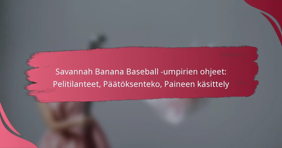 Savannah Banana -pesäpallon tuomarikäytännöt korostavat ainutlaatuisten pelisääntöjen ymmärtämisen ja tuomaroinnin mekaniikan hallinnan tärkeyttä. Tuomareiden on oltava taitavia tekemään nopeita päätöksiä paineen alla samalla kun he varmistavat selkeän viestinnän pelaajien ja valmentajien kanssa. Hallitsemalla pelitilanteita tehokkaasti ja hyödyntämällä päätöksentekokehyksiä tuomarit voivat edistää positiivista ympäristöä ja ylläpitää reilua peliä kentällä.